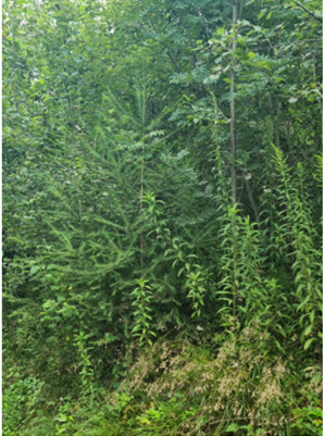 • Le indagini condotte nell'ambito del legname da schianto hanno rivelato che il popolamento forestale prima del danno causato dalla tempesta VAIA, era composta interamente da conifere (80% abete rosso, 10% larice, 10% pino).